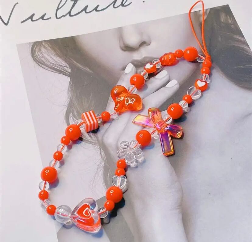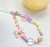 キラキラビーズや可愛い装飾の組み合わせが可愛いスマホストラップです✧